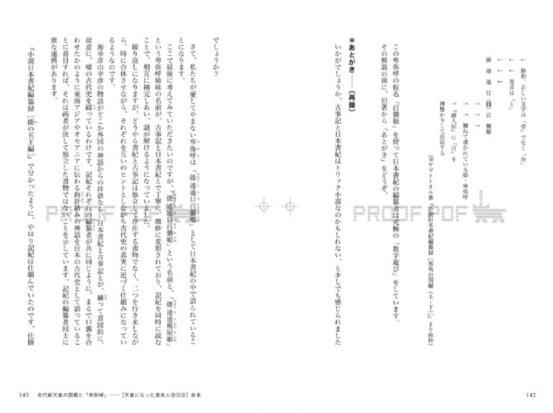 (本書の価格は不定価:通常時価格2,699円) 天皇になった渡来人 ⑩古事記は2番目に読む本 ⑪ワープする仕組みの日本書紀 ⑫卑弥呼の名「百襲姫」三つの秘密 ・・・・・・・・・・・・・・・ なぜ卑弥呼の名前は「百襲姫」なのか。 いま1,300年の時を越えて明かされる 卑弥呼の名「百襲姫」三つの秘密とは。 古代新天皇「即位年」の秘密とは──。 ※本書は新書判(紙の本) ※2025年末まで1,900円+税 ※PCブラウザは、Google Chrome専用です。他のブラウザでは、リーダー線等、正しく表示されません。ご利用のブラウザをGoogle Chromeに切り替えて閲覧してください。 ※系図内の罫線位置等に多少のズレがあります(PCとipad等ではズレ方が異なります)。 ※1行に38文字以上表示できない場合、系図やリストが正しく表示されないものがあります(電子本の場合)。