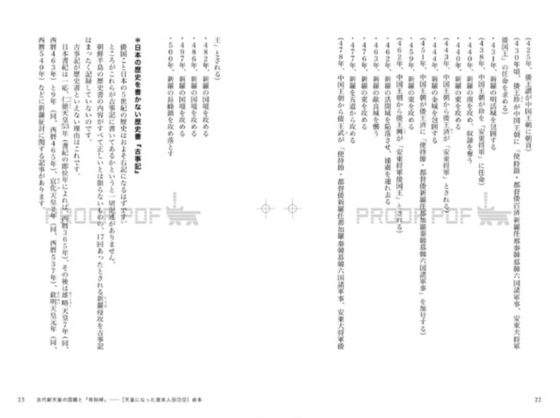 ◎本書は10インチ判 (縦192ミリ×横148ミリ)。 ◎新書判(2,090円~)はhttps://bccks.jp/bcck/181174/info 天皇になった渡来人 ⑩古事記は2番目に読む本 ⑪ワープする仕組みの日本書紀 ⑫卑弥呼の名「百襲姫」三つの秘密 ・・・・・・・・・・・・・・・ なぜ卑弥呼の名前は「百襲姫」なのか。 いま1,300年の時を越えて明かされる 卑弥呼の名「百襲姫」三つの秘密とは。 古代新天皇「即位年」の秘密とは──。 ※PCブラウザは、Google Chrome専用です。他のブラウザでは、リーダー線等、正しく表示されません。ご利用のブラウザをGoogle Chromeに切り替えて閲覧してください。 ※系図内の罫線位置等に多少のズレがあります(PCとipad等ではズレ方が異なります)。 ※1行に38文字以上表示できない場合、系図やリストが正しく表示されないものがあります(電子本の場合)。